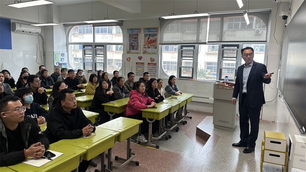 随后,一年级主任苏德强做了《共育新起点 同心筑未来》的报告,围绕常规训练养习惯、特色课程提素养、家校配合促成长等方面介绍了一年级孩子入学后的成长,鼓励家长耐心陪伴、科学引导,告诉家长只要我们家校共育携手同行,我们的孩子一定可以顺利适应小学生活。