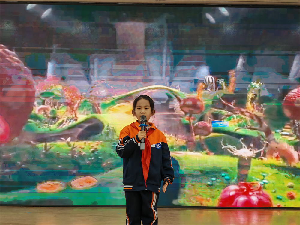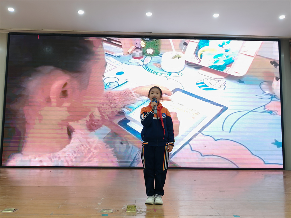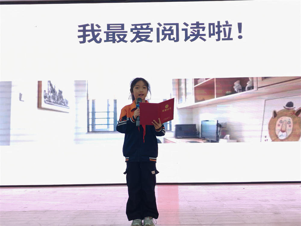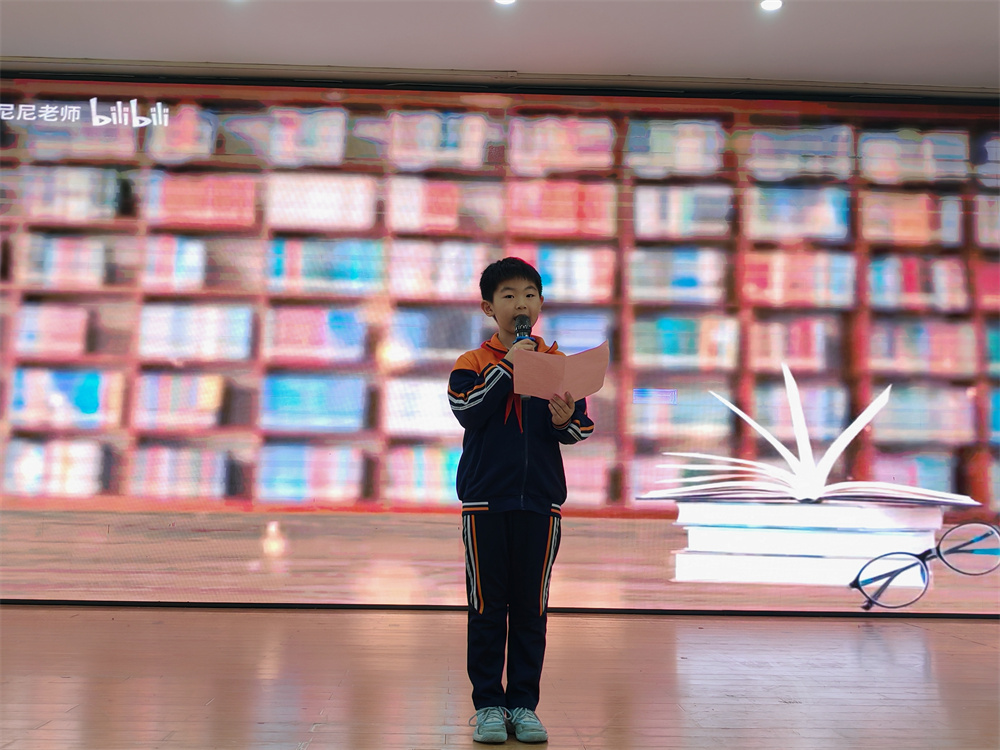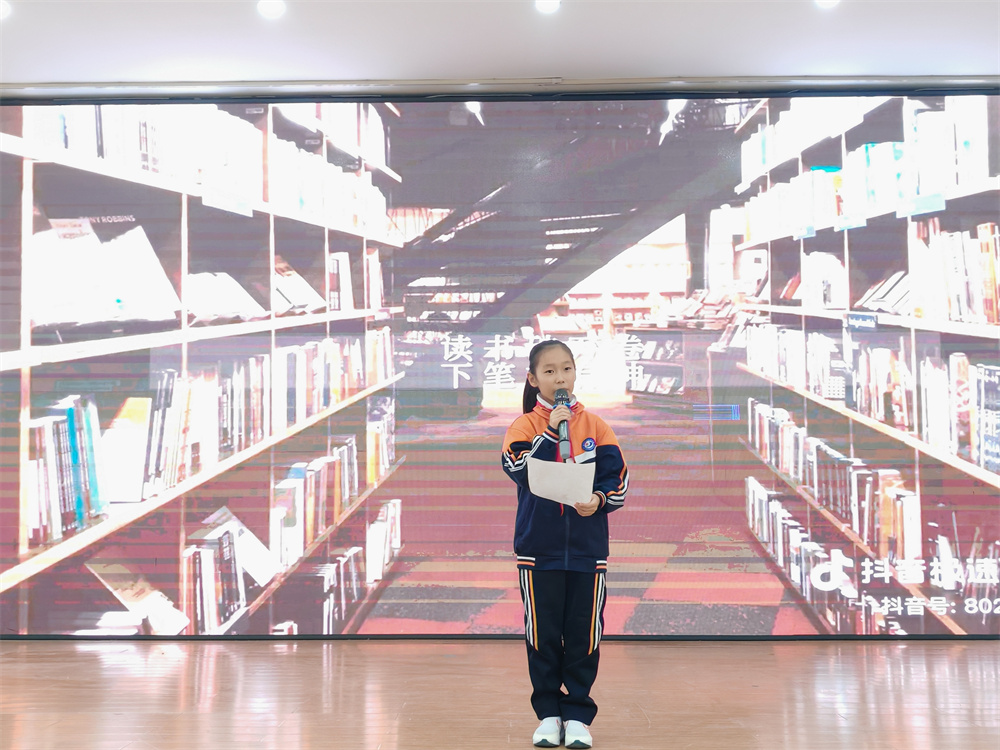 决赛现场,伴随着主持人饱含深情的开场白,比赛正式拉开帷幕。十七位选手依次登台,围绕 “我爱读书” 主题各抒己见:王芸霏同学以《书香伴成长,阅读向未来》诉说书香浸润的成长之路;井思淼同学在《好书伴诗行》中勾勒书中的诗与远方;胡竣茜同学将书籍比作 “任意门”,带大家穿越时空探索未知;王米多同学以《读书,点亮童年的小星光》诠释阅读对童年的滋养…… 选手们或激情澎湃、字句铿锵,或娓娓道来、言辞恳切,多样的演讲风格碰撞出个性的火花,真挚的情感表达引发全场师生强烈共鸣,现场掌声此起彼伏。
