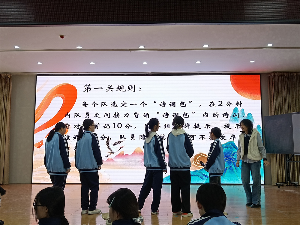 第二关“诗词接龙” 侧重知识储备,选手们依次接答诗句,展现平日积累,赢得阵阵掌声。