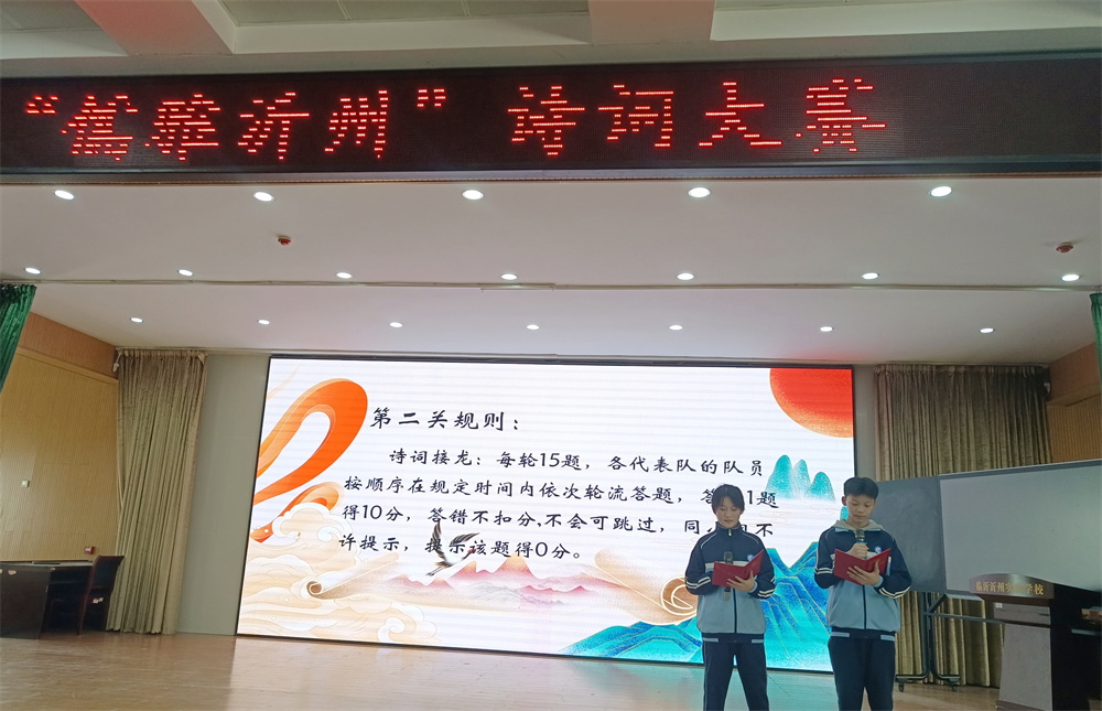 为传承中华优秀传统文化,营造浓厚的书香校园氛围,激发学生对古典诗词的热爱,2025年11月25日至12月19日,我校七年级组织开展了“儒雅沂州”诗词大赛。本次活动以“传颂经典诗词,争做书香少年”为主题,通过班级初赛与年级决赛相结合的形式,引导学生走进诗词世界,感受中华文化之美。