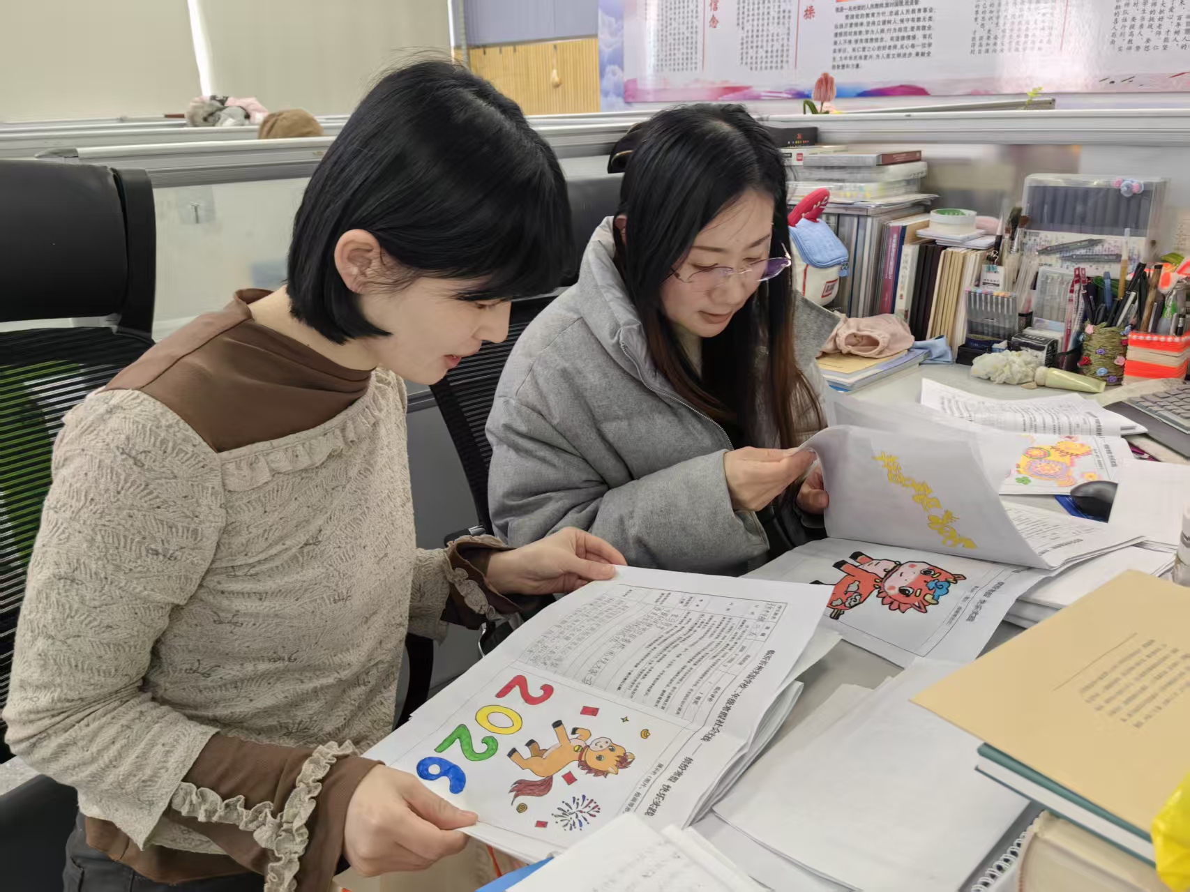 本次展览汇集了同学们在假期中的创意成果。五彩斑斓的灯笼悬挂在枝头,满是浓郁的年味儿。从马年剪纸到充满年味的手抄报,从手工制作的灯笼到家风故事的分享,再加上同学们的劳动成果——拿手好菜,每一件作品都展现出同学们的童真与巧妙构思,体现了他们对传统文化的热爱。