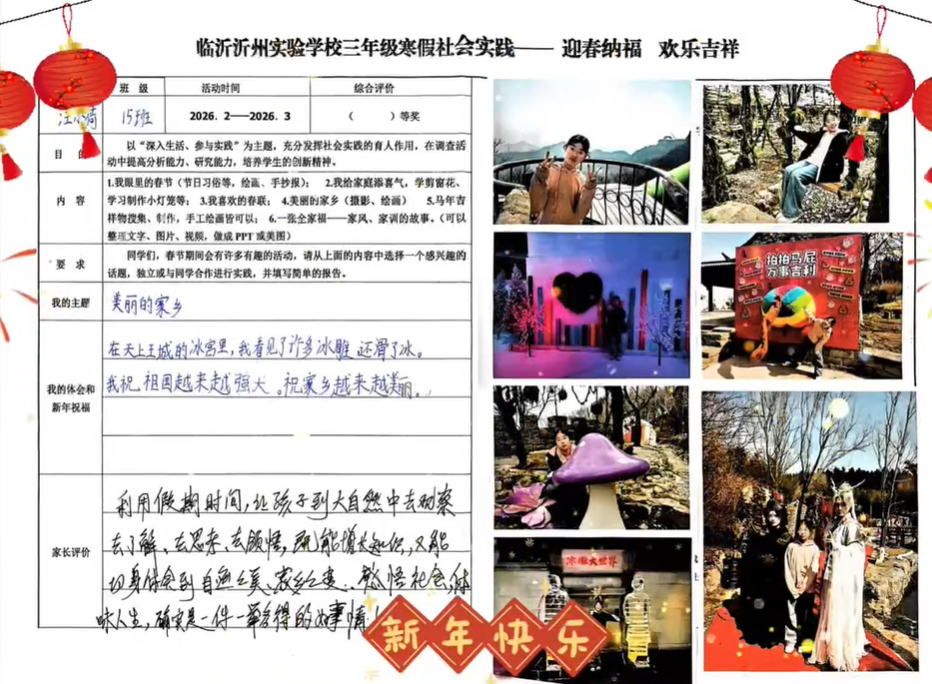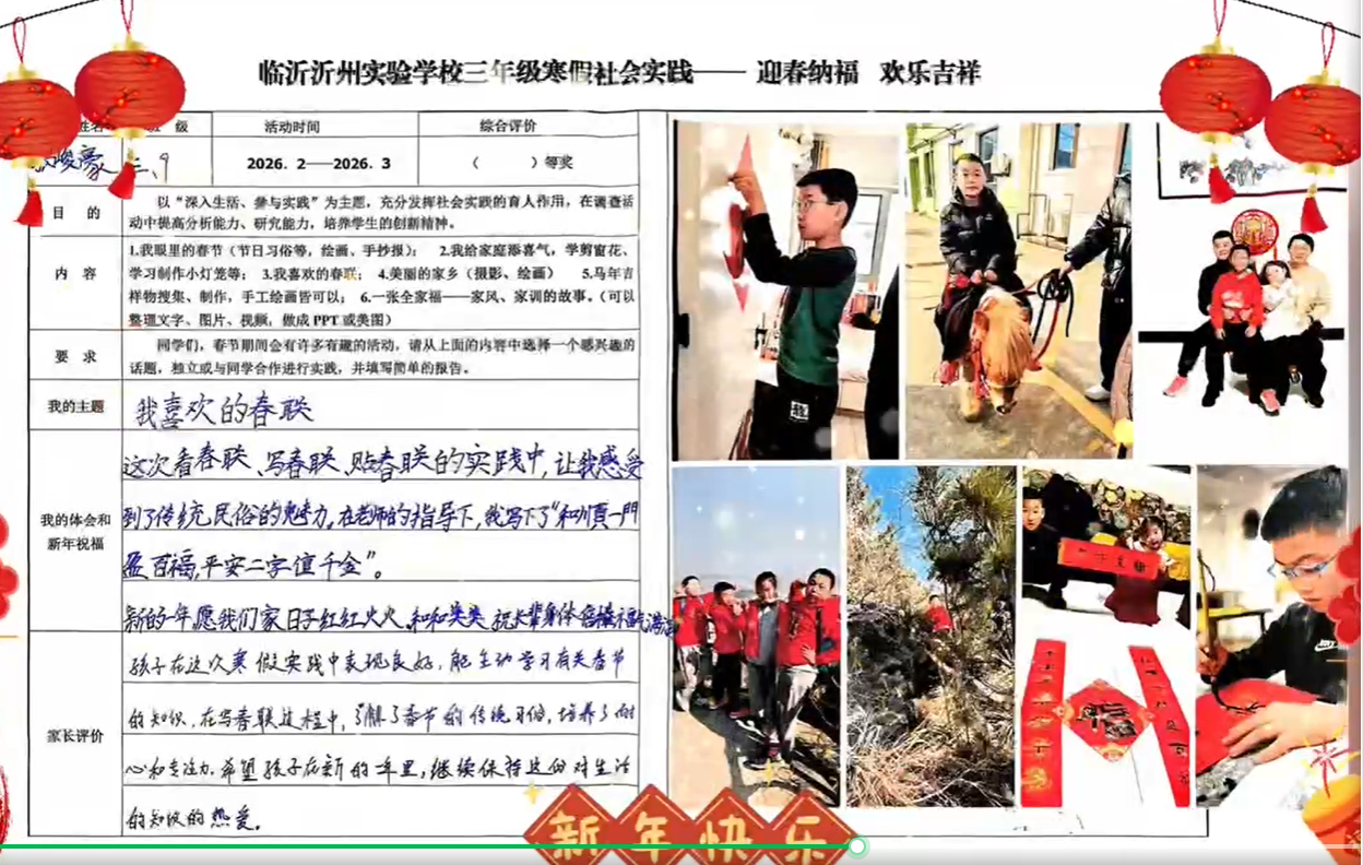 春风轻拂校园,枝头的灯笼随风摇曳。临沂沂州实验学校的寒假实践作业展如约而至,为这春日的校园增添了一抹温暖而热闹的色彩。