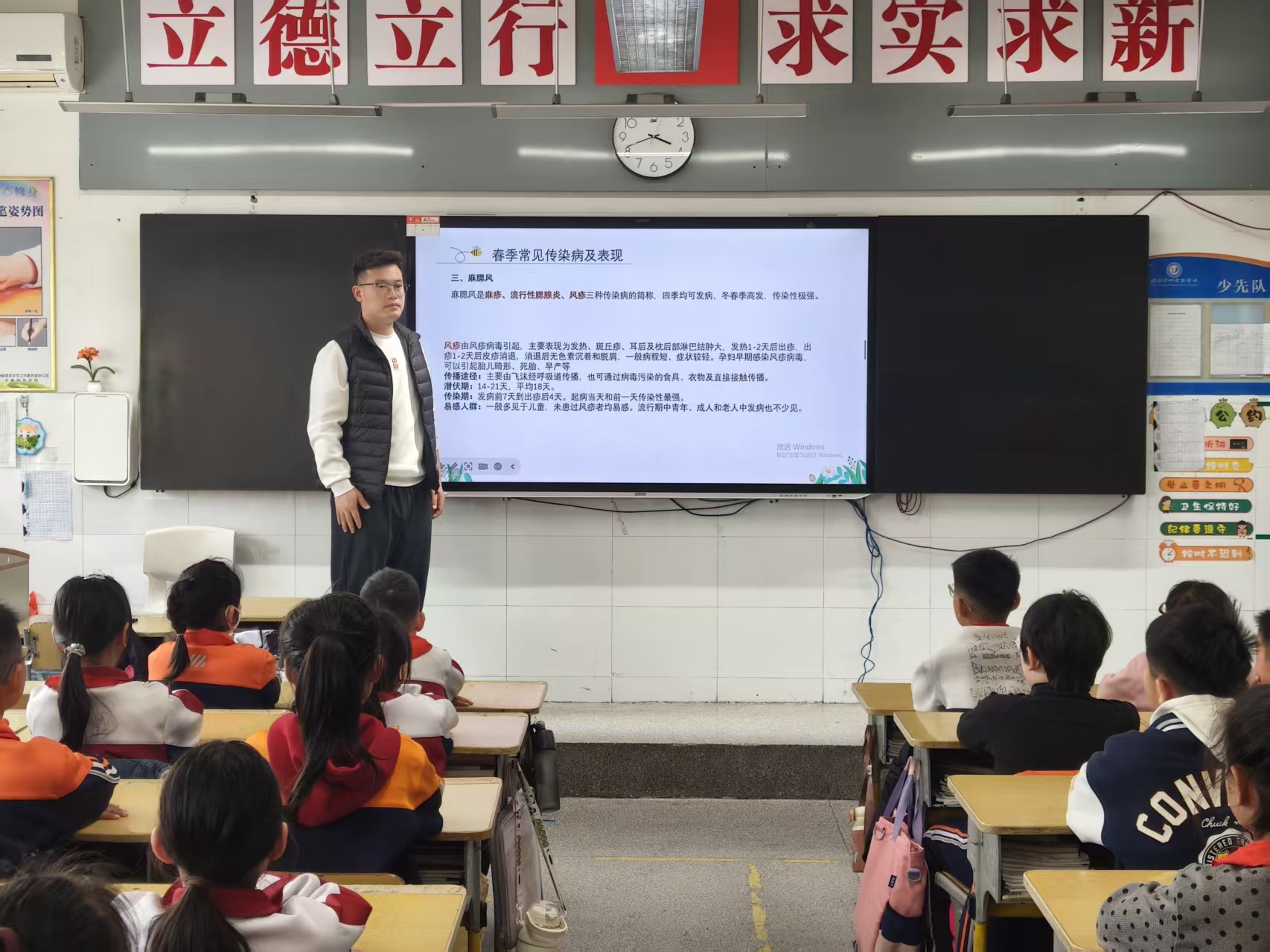 班会上,梁老师围绕流感、水痘、麻腮风、手足口病、诺如病毒、肺结核等常见春季传染病,细致讲解了各类疾病的传播途径、典型症状与易感人群,提醒同学们提高警惕,做到早发现、早就医、不隐瞒,主动配合学校健康管理。