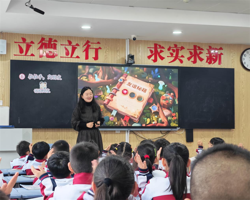 道法课堂创意十足,教师借助AI创设虚拟情境,学生通过AI工具模拟视频通话、发送信息,直观体验现代科技带来的沟通便捷。一年级的AI“交友”课堂,更是让德育启蒙在互动中自然发生。