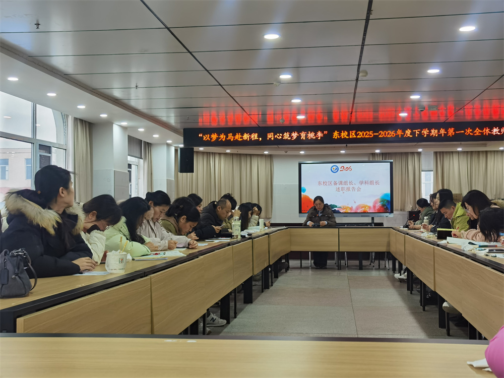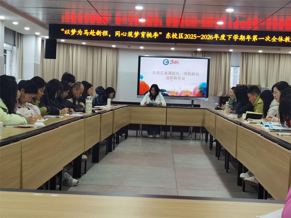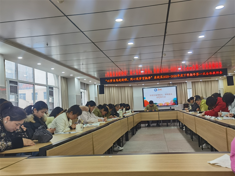 为全面总结上学期教研工作成效,凝聚团队发展共识,精准谋划新学期工作,全力助推东校区教育教学高质量发展,3月1日上午8:30,东校区全体教师会议在四楼会议室顺利召开。会议紧扣述职复盘、新学期教研部署、常规工作安排三项核心任务,有序推进、务实高效,为新学期教育教学工作开好局、起好步筑牢根基。